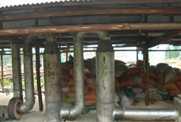 土窯的建造要選資源豐富,運輸方便,坡度較小的空敞地作窯址,靠近水源,土壤要堅實, 好是粘土。在選好的窯址上,畫一個等邊三角形,每邊長約2.1m。在線內向下挖1m深左右,即為炭化室。炭化室前端略高于后端,在炭化室后面正中挖煙道腔和排煙孔,